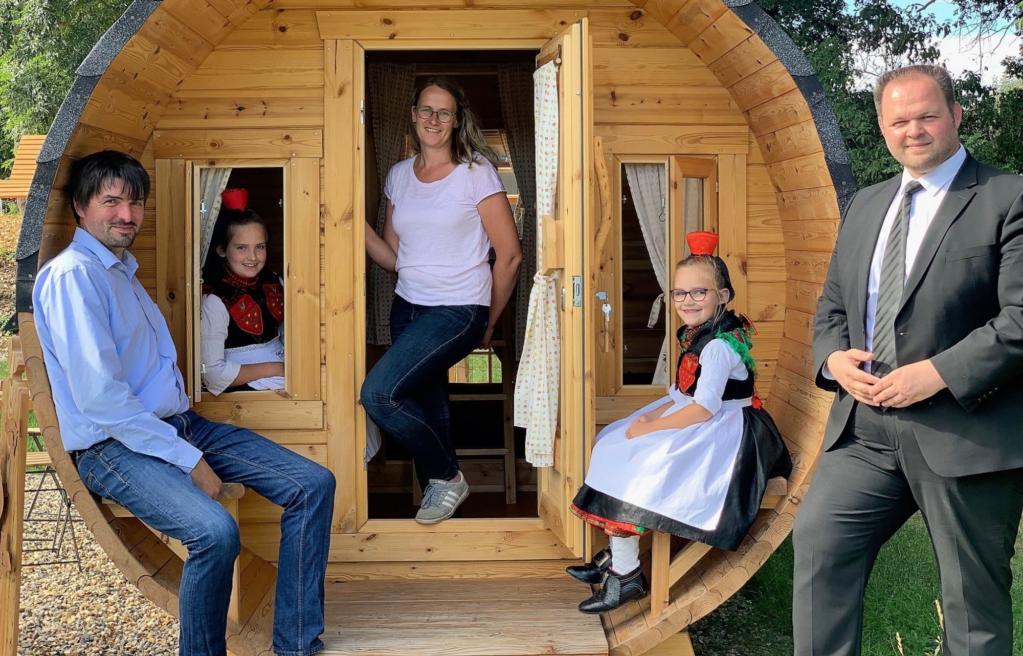 „Urlaub auf dem Bauernhof“ ist auch in Schwalmstadt-Allendorf möglich – zur Übernachtung hat die Familie Ziegler statt Häuser für ihre Gäste sechs Fässer auf die grüne Wiese gestellt. Zu jedem Fasshaus gehört ein persönliches Badezimmer mit Dusche und WC. „In unsern Fasshäusern ist es auch bei kühleren Temperaturen urgemütlich und für ganz kalte Nächte gibt es eine Heizung“, sagt Thomas Ziegler. Entstanden ist die Idee für das ungewöhnliche Feriendorf 2019. Damals feierten Zieglers mit Freunden, Bekannten und Kunden in Allenddorf ein Hoffest. Gut 350 Leute seien damals da gewesen, erinnert sich Regina Ziegler-Dörhöfer. Hier wurde immer wieder das Thema: Übernachtungsmöglichkeiten direkt am Hof angesprochen. Die Menschen wollen gerne direkt erleben, wie es auf dem Land ist und wo die Produkte herkommen, sagt die Landwirtin: „Landleben erleben.“ Als Thomas Ziegler und seine Frau einen Kurzurlaub in einem Schäferwagen machten, kam die zündende Idee. Statt eines Wohnwagens sollten es aber Fässer sein, sagt Regina Ziegler-Dörhöfer lächelnd: „Dadurch entsteht ein Geborgenheitsgefühl und das ist eine runde Sache.“