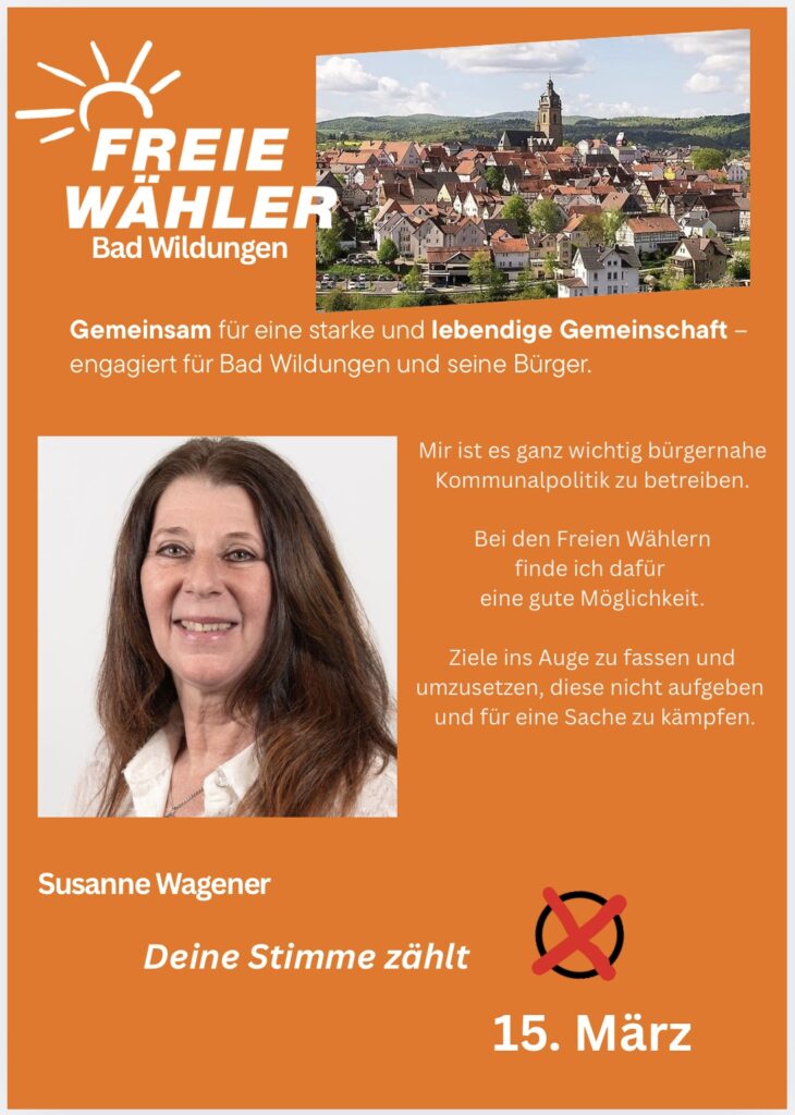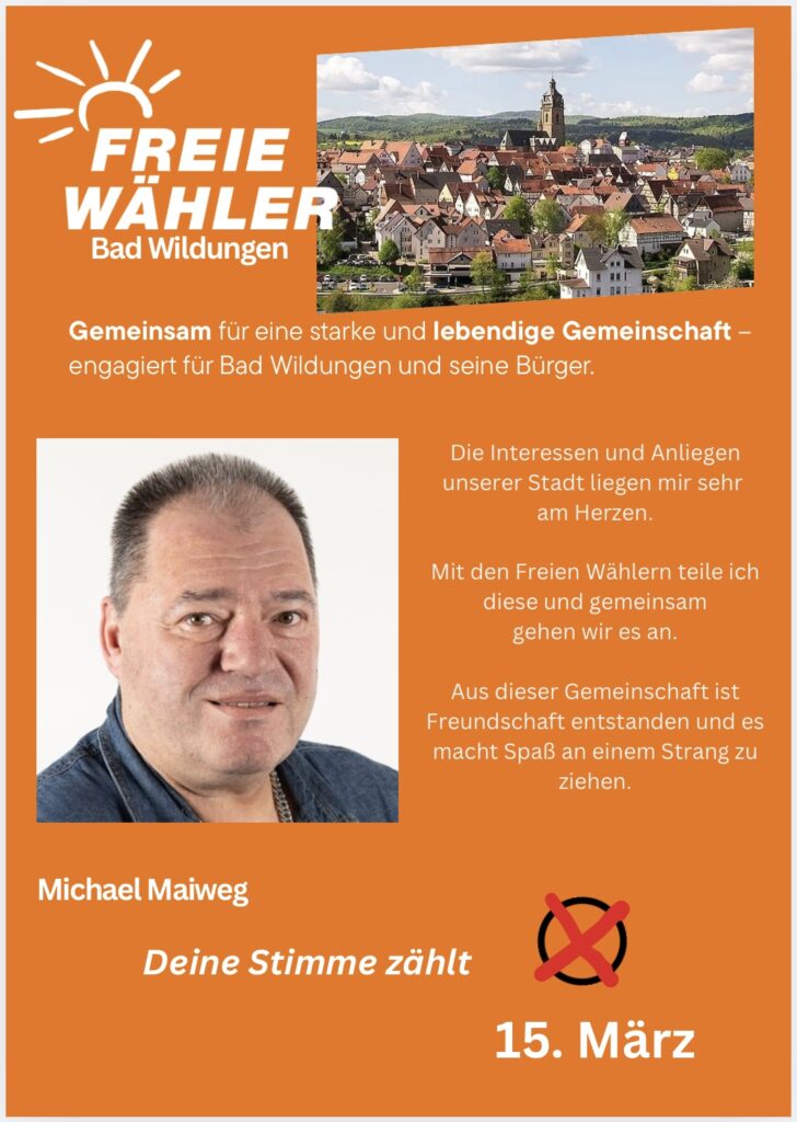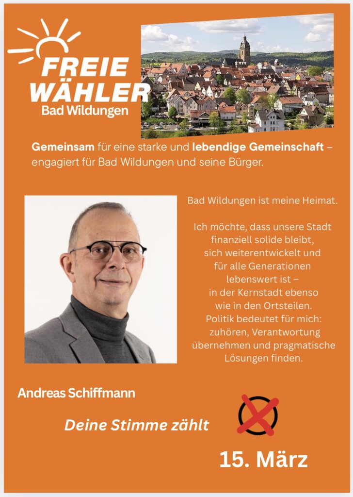 Bad Wildungen ist meine Heimat. Ich möchte, dass unsere Stadt finanziell solide bleibt, sich weiterentwickelt und für alle Generationen lebenswert ist – in der Kernstadt ebenso wie in den Ortsteilen.